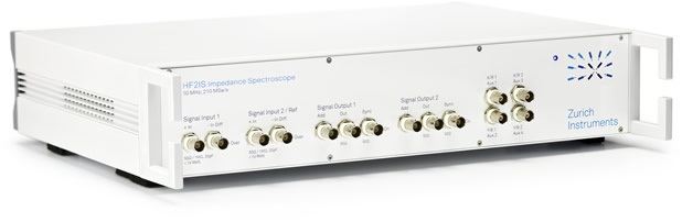 对于阻抗谱仪应用而言, HF2IS是能满足使用者需求的产品。本产品拥有两个差分测量单元,4个双相解调器,频率范围广,并且配合准确度极高的128位DSP(数字信号处理器)进行使用,能够满足目前研究实验室高要求。
